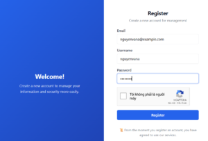 B2 : Nhập đầy đủ thông tin như : email,username,password và nhấn đăng ký