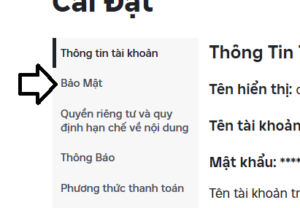 Trong thông tin tài khoản , tìm phần Bảo mật(Security)