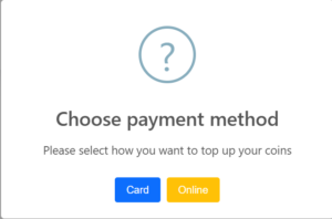 Đối với Bank : chọn số tiền hệ thống sẽ tự động hiện số coins bạn nhận được,và nhấn thanh toán.Sau đó sẽ hiện QR code thanh toán xong số coins tự động cộng sau 2s